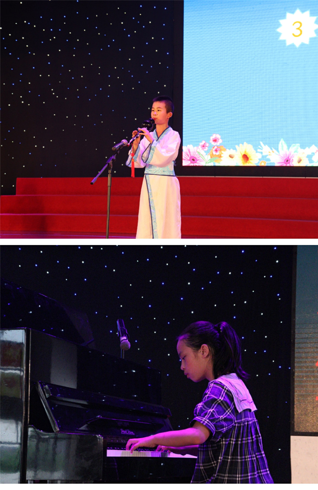 这里笛声悠扬,绵长的音韵是孩子们轻柔的吟唱;这里琴弦震颤,变幻的旋律是孩子们多彩的随想;这里号角声声,雄浑的曲调是孩子们内心的咏叹!学生们用优美的弦乐,将比赛推向了一个又一个高潮,整场比赛把艺术校园的气氛完全展现出来。